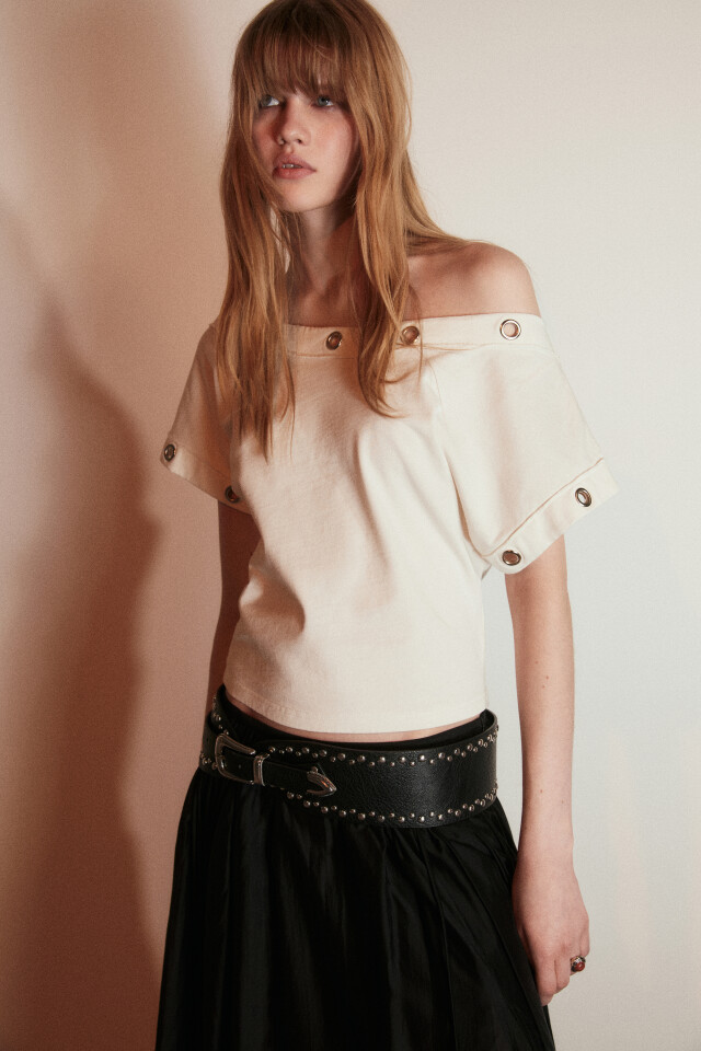Футболка облегающая на одно плечо с люверсами