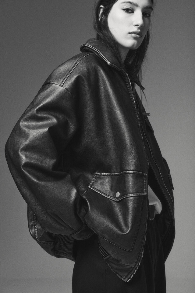 Куртка-бомбер с кожаной фактурой утепленная без капюшона