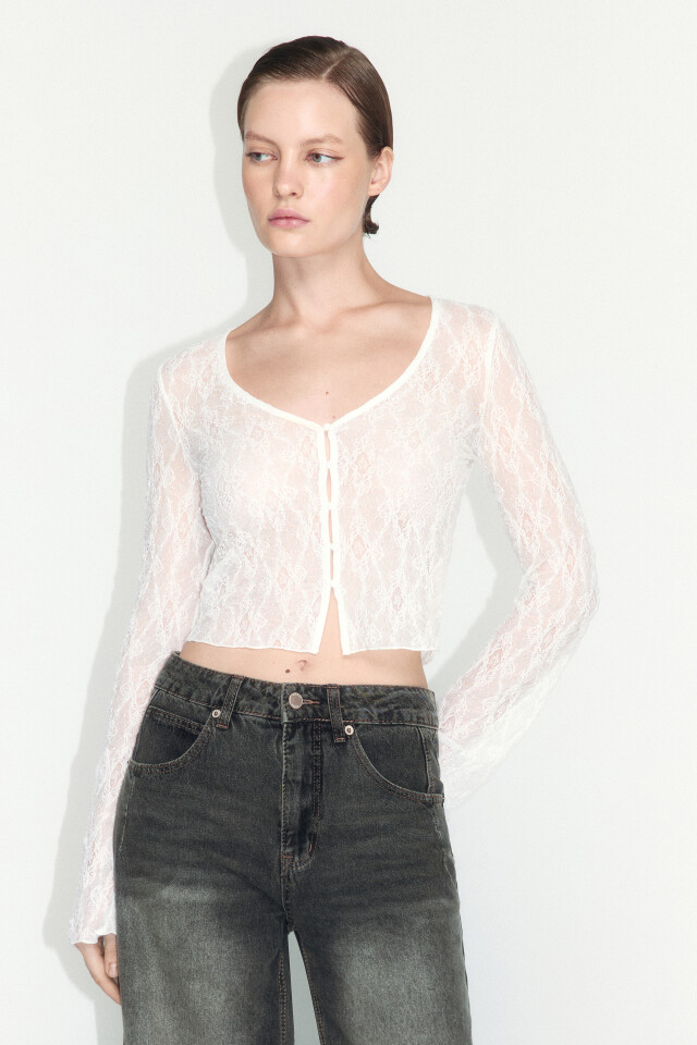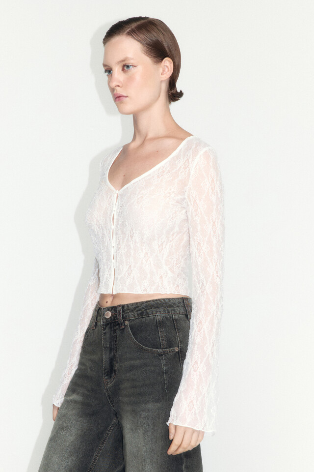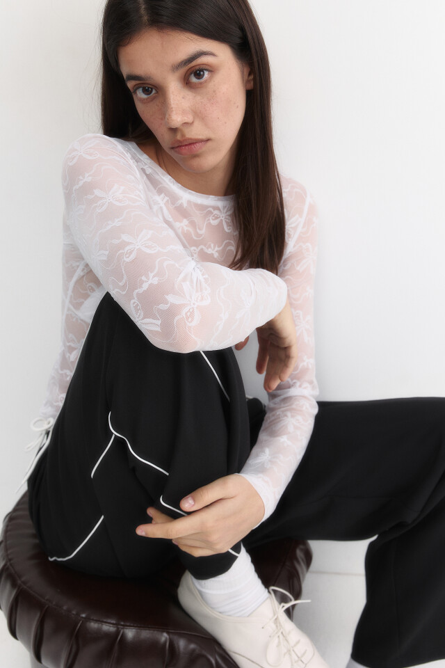 Лонгслив приталенный сетчатый с принтом-бантиками