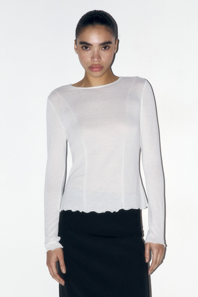 Лонгслив хлопковый приталенный с вырезом-лодочкой