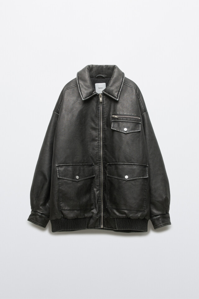 Косуха с кожаной фактурой укороченная без капюшона