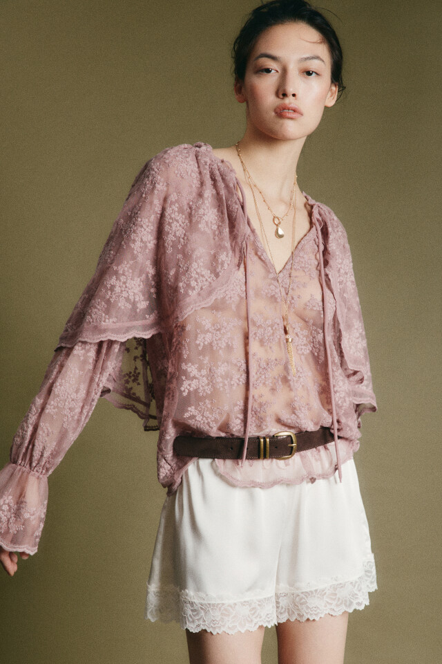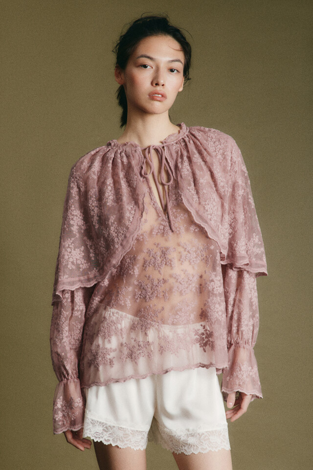 Блузка ажурная с кейпом и оборками