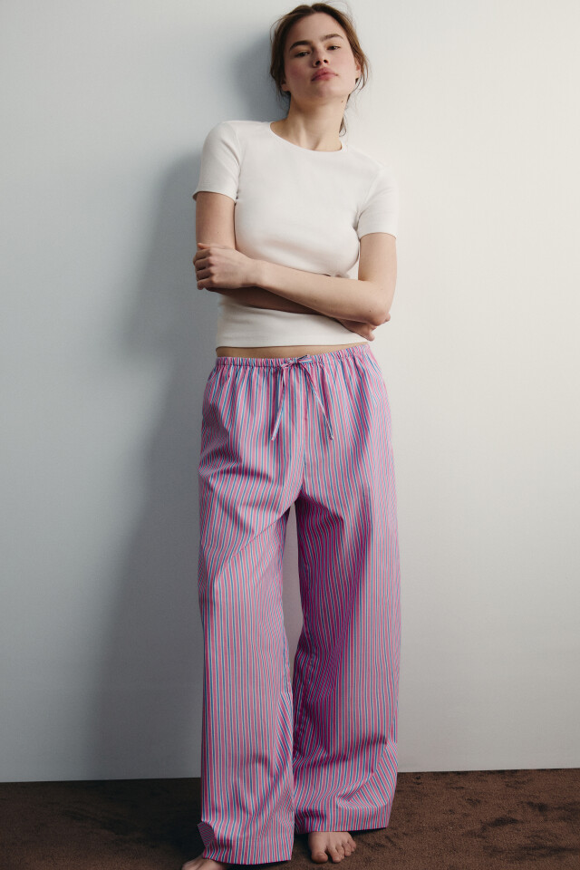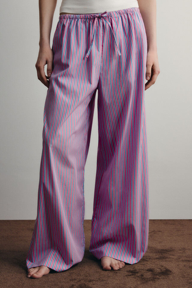 Брюки домашние хлопковые в полоску на завязках