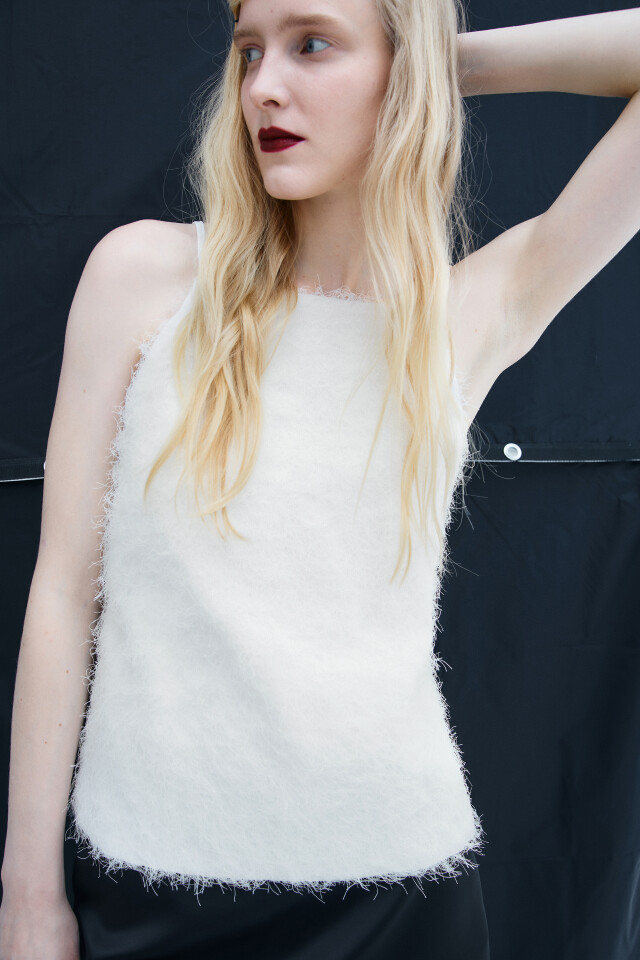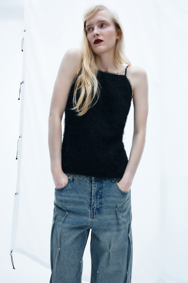 Блузка-топ на бретельках с пушистой бахромой