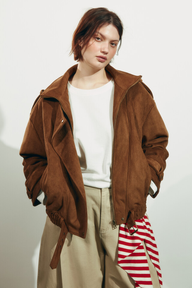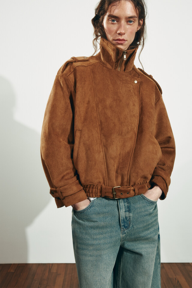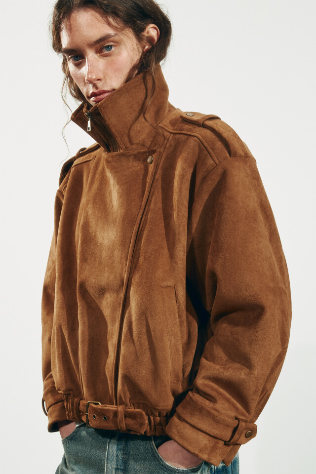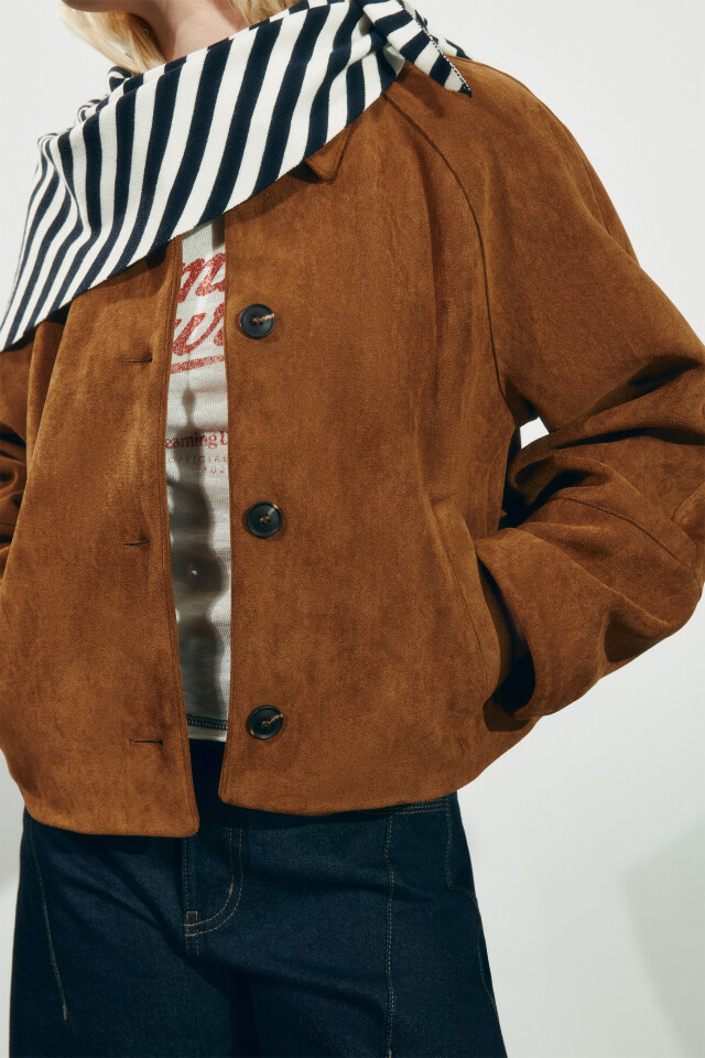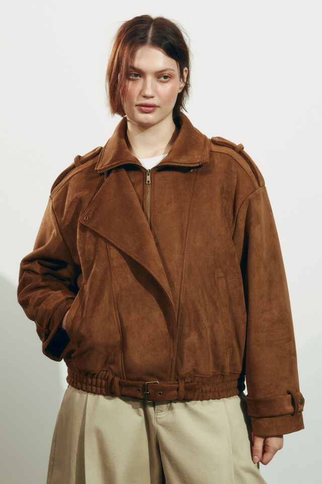 Куртка-бомбер с замшевой фактурой без капюшона утепленная