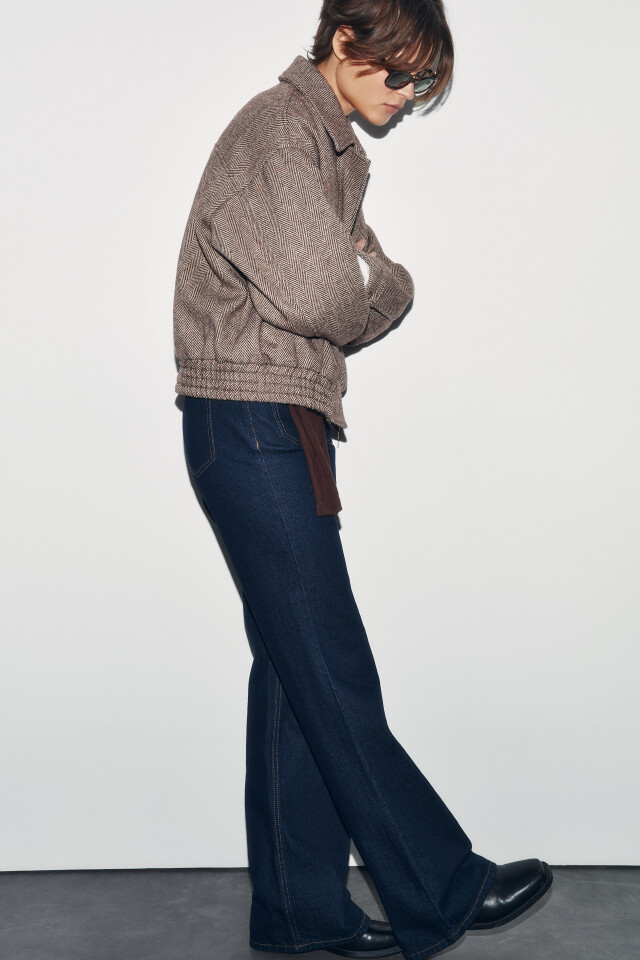 Куртка-бомбер драповая без капюшона в елочку