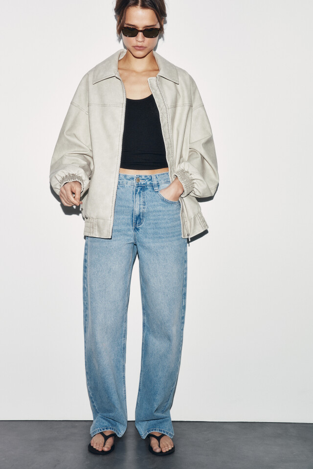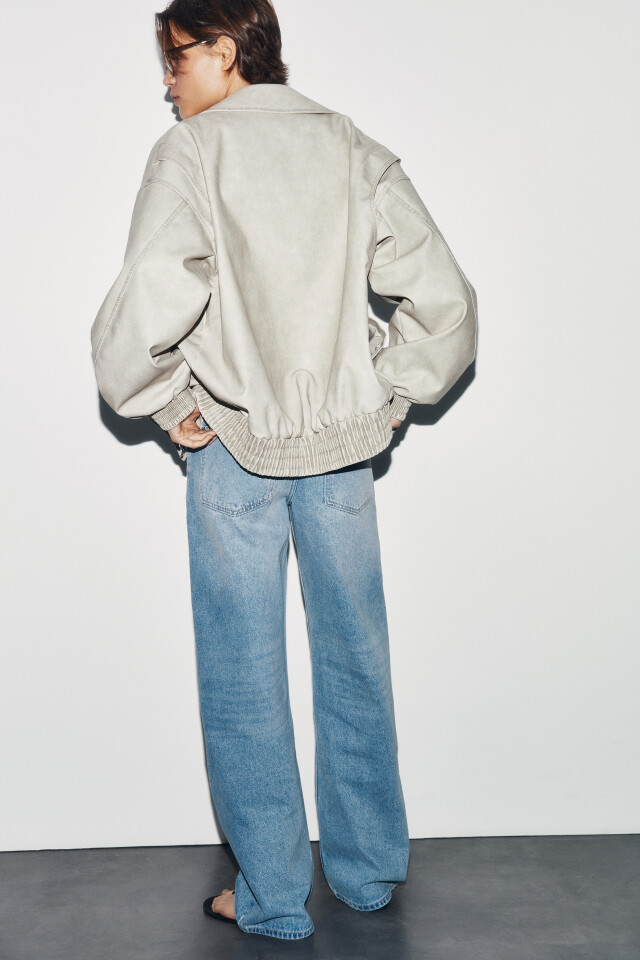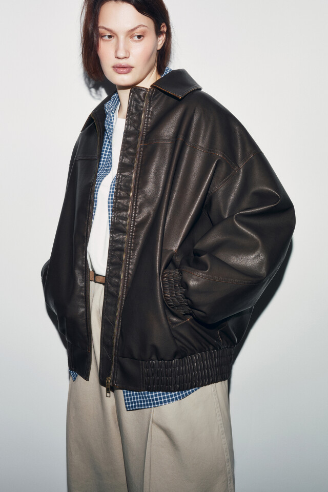 Куртка-бомбер с кожаной фактурой без капюшона