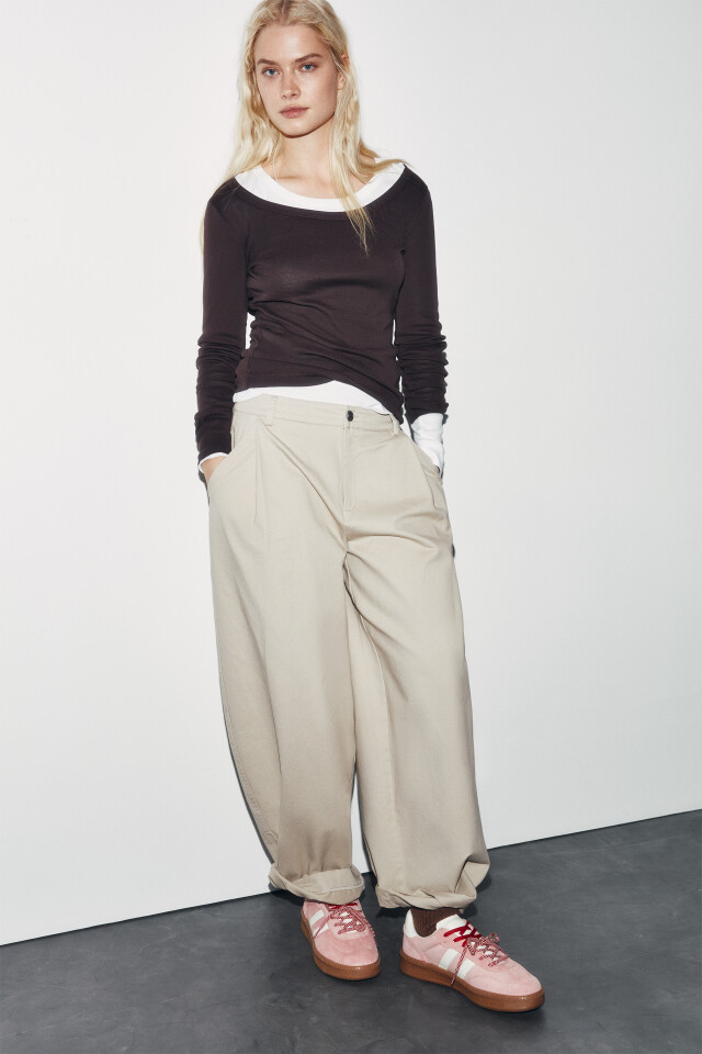 Брюки широкие из футера со средней посадкой