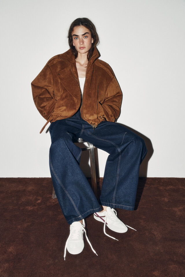 Куртка с замшевой фактурой и шнуровкой без капюшона