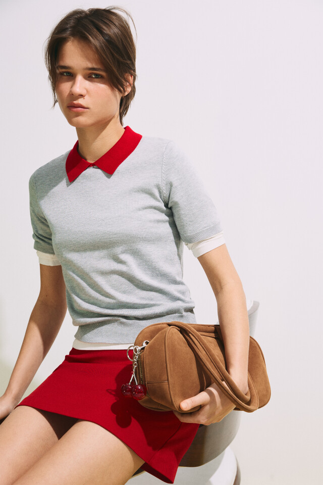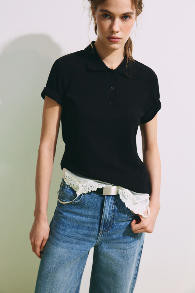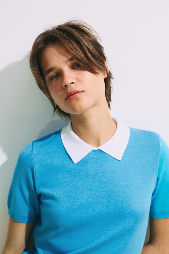 Футболка-поло вязаная с контрастным воротником