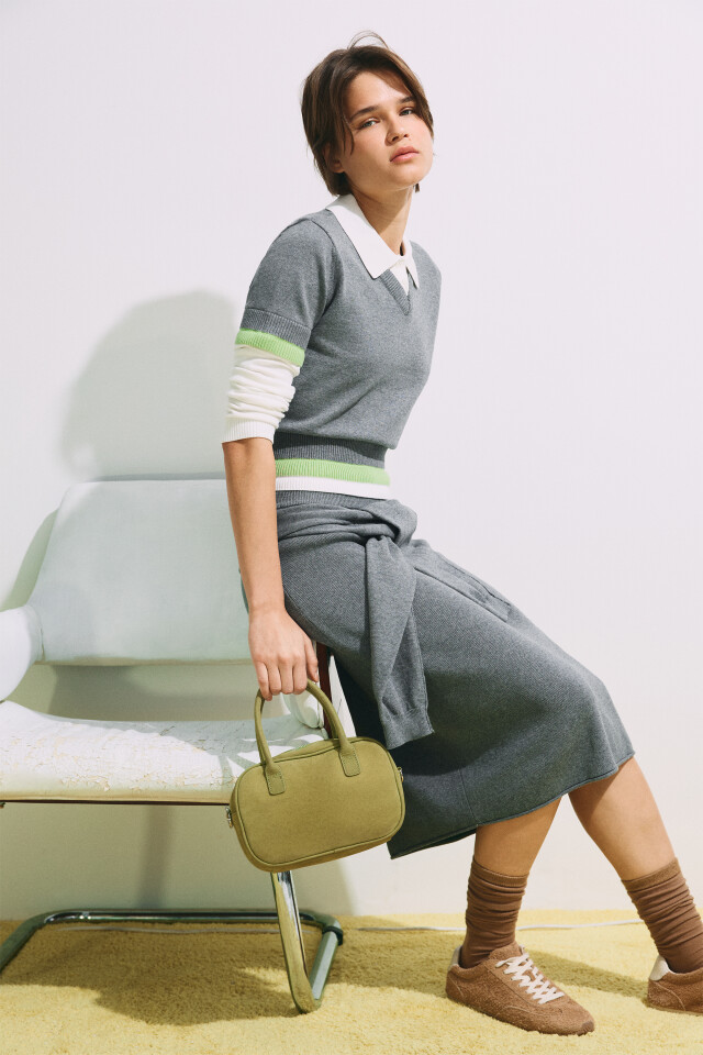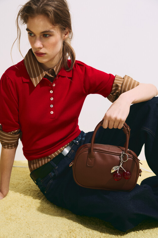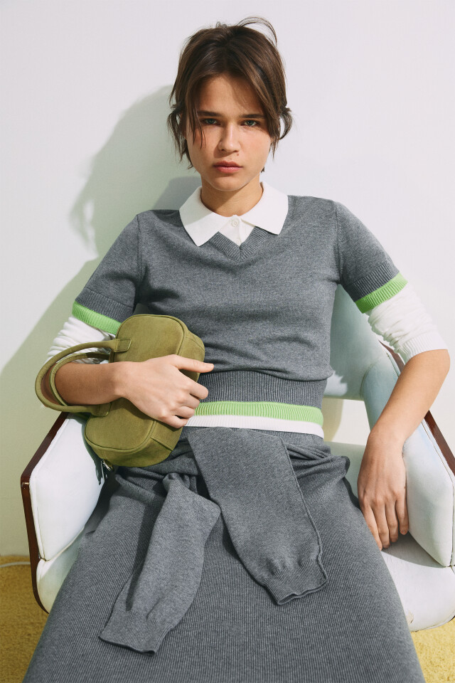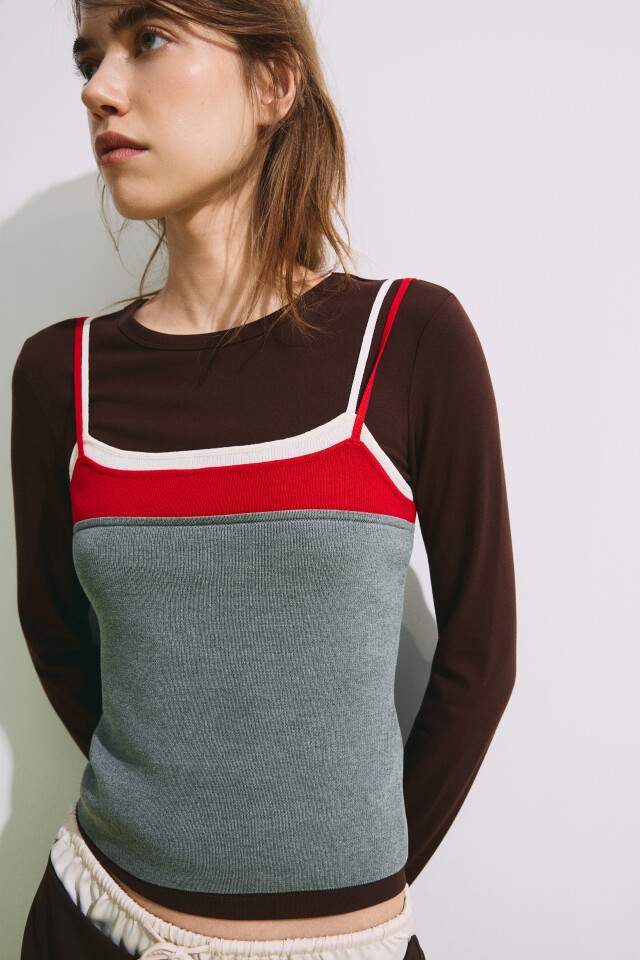 Джемпер-поло вязаный с имитацией второго слоя
