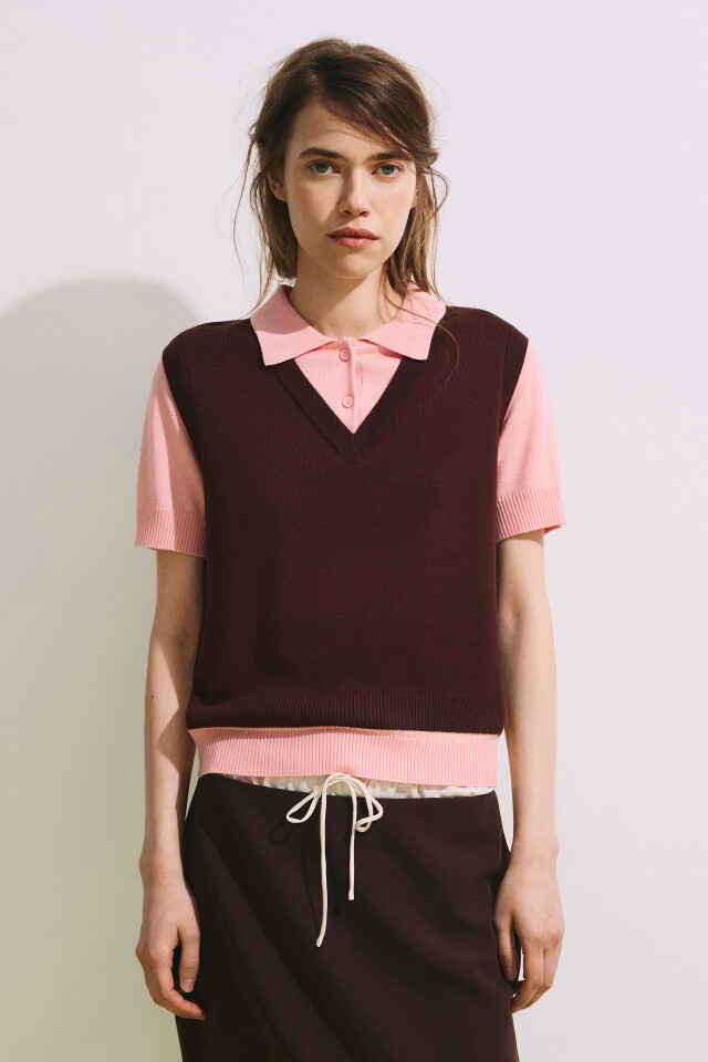 Джемпер-поло с имитацией жилетки
