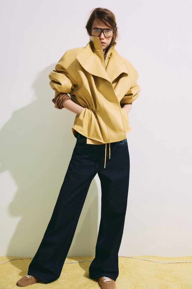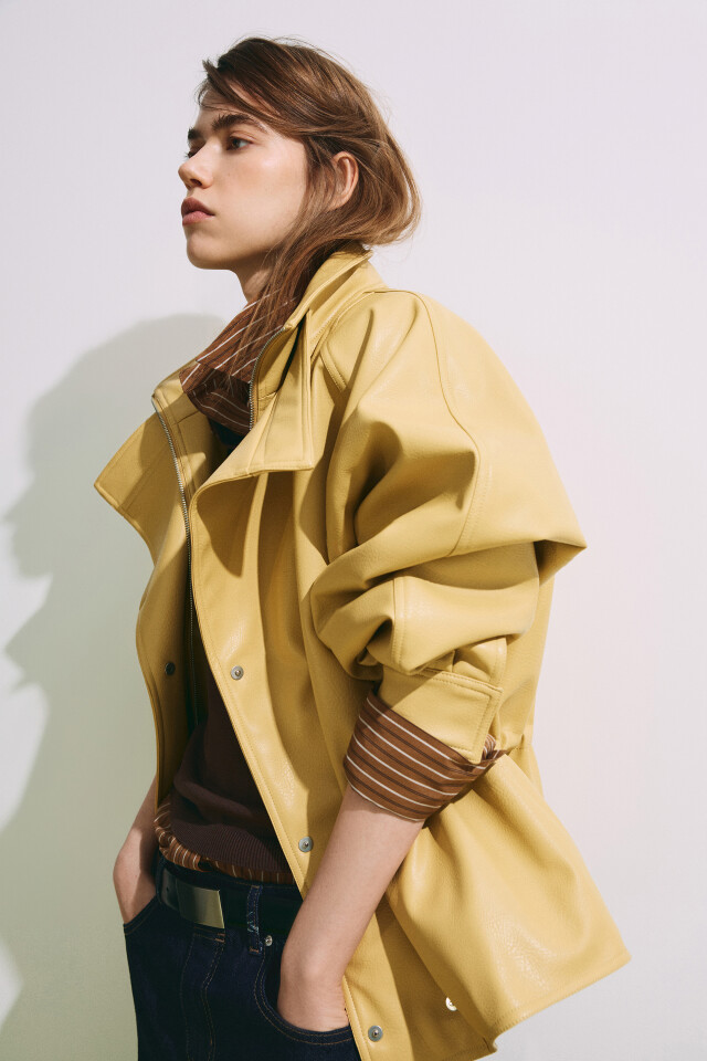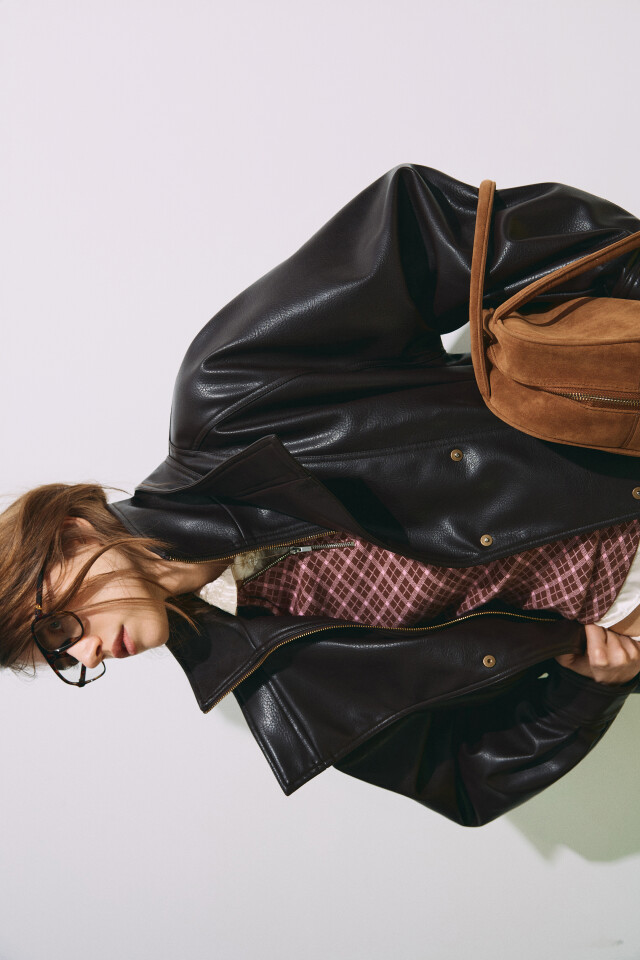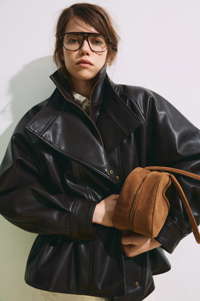Куртка с кожаной фактурой на кулиске без капюшона