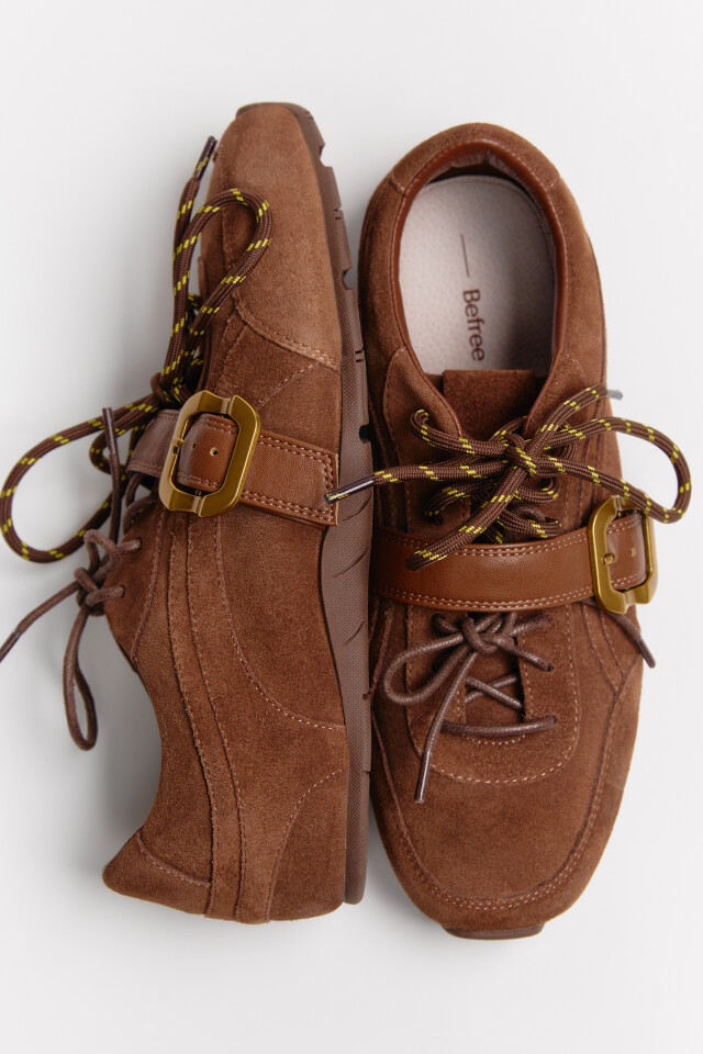 Кроссовки из натуральной кожи с боковой пряжкой
