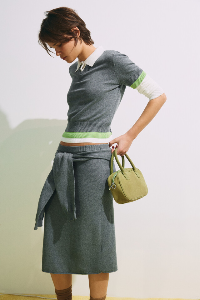 Юбка прямая миди с завязанными рукавами