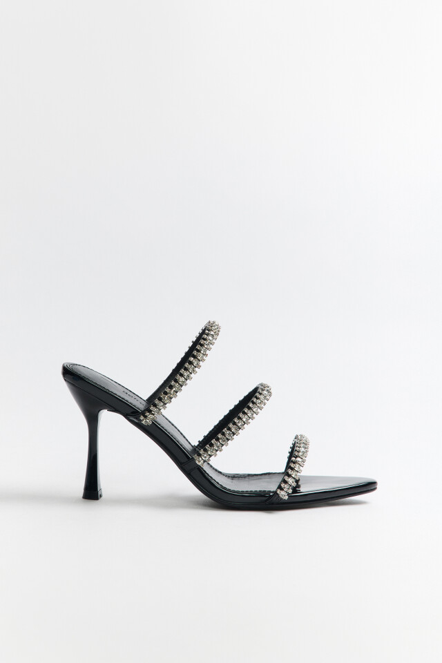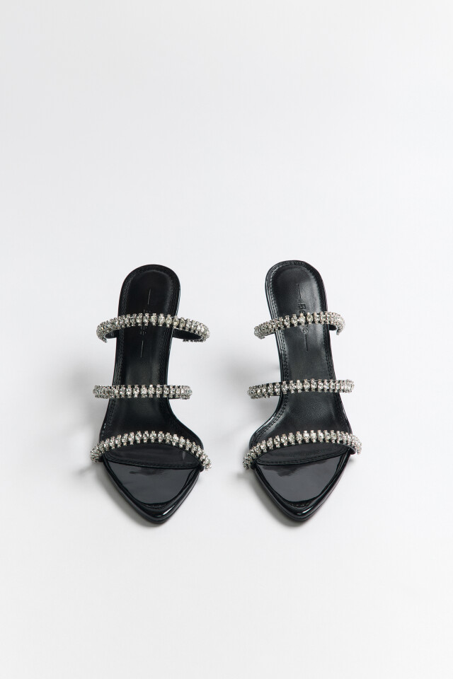 Мюли с ремешками и стразами на каблуке