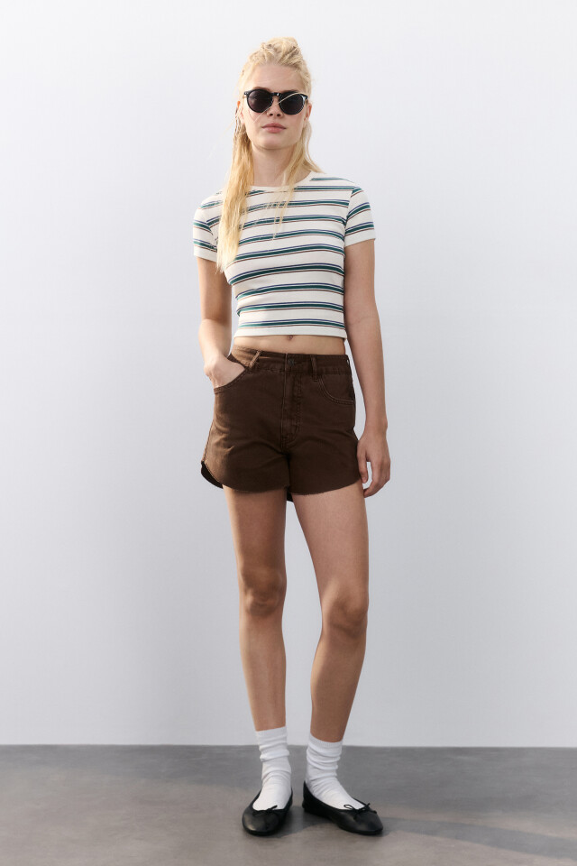 Джемпер-поло укороченный в рубчик