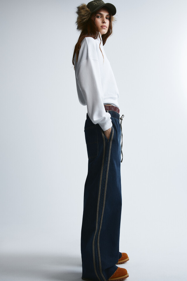 Джинсы baggy fit с лампасами на завязке