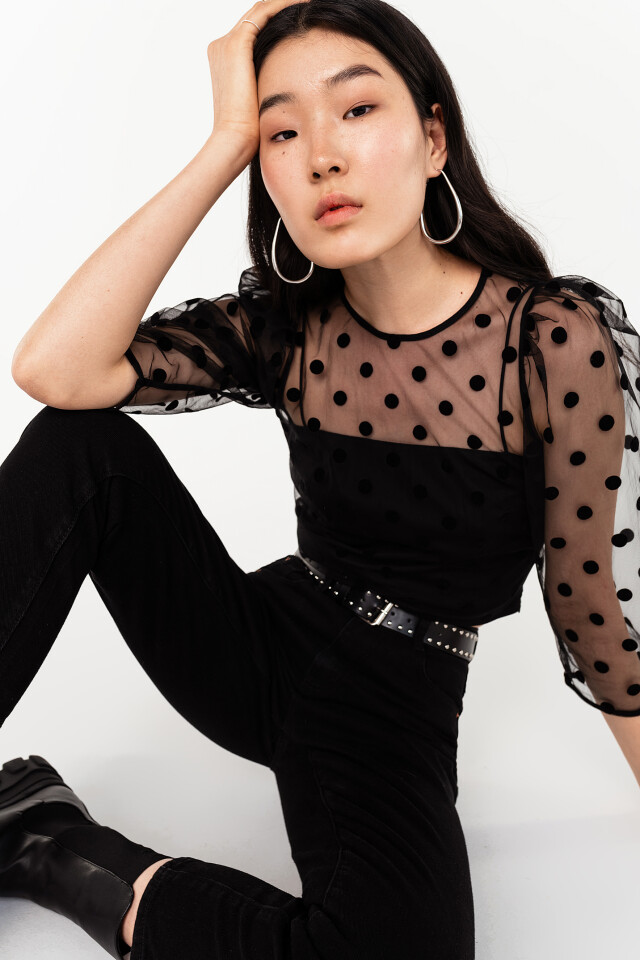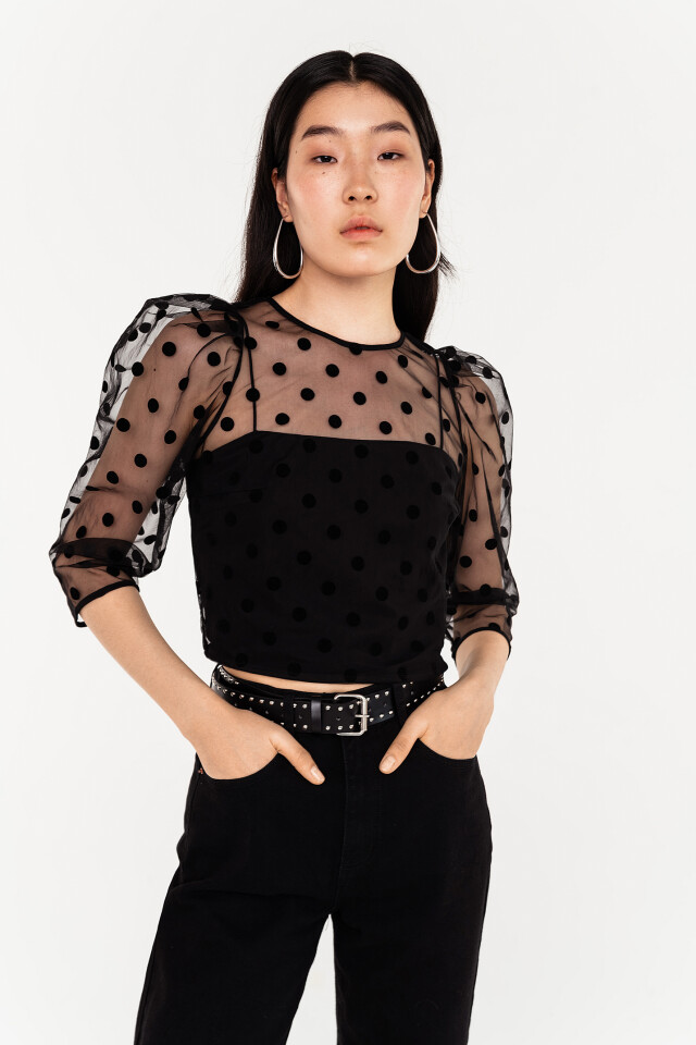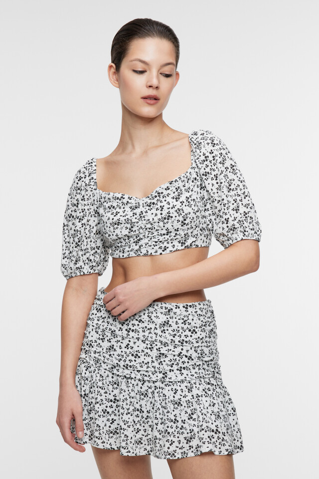 Блузка-топ льняная укороченная с запахом и V-вырезом