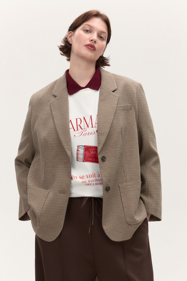 Пиджак в клетку с накладными карманами
