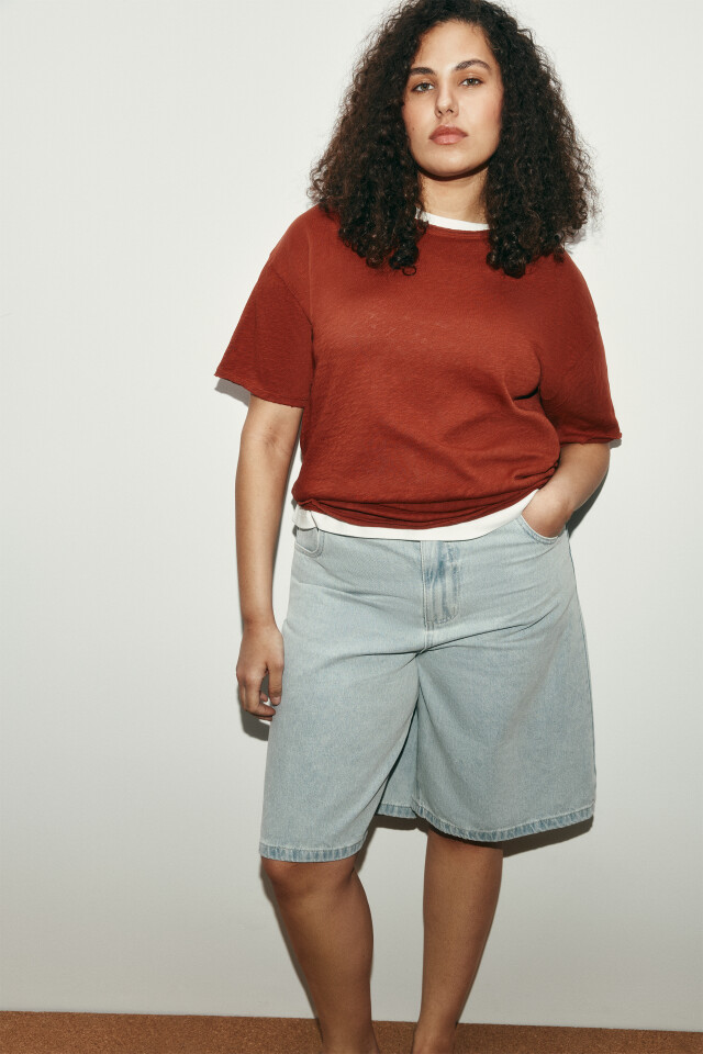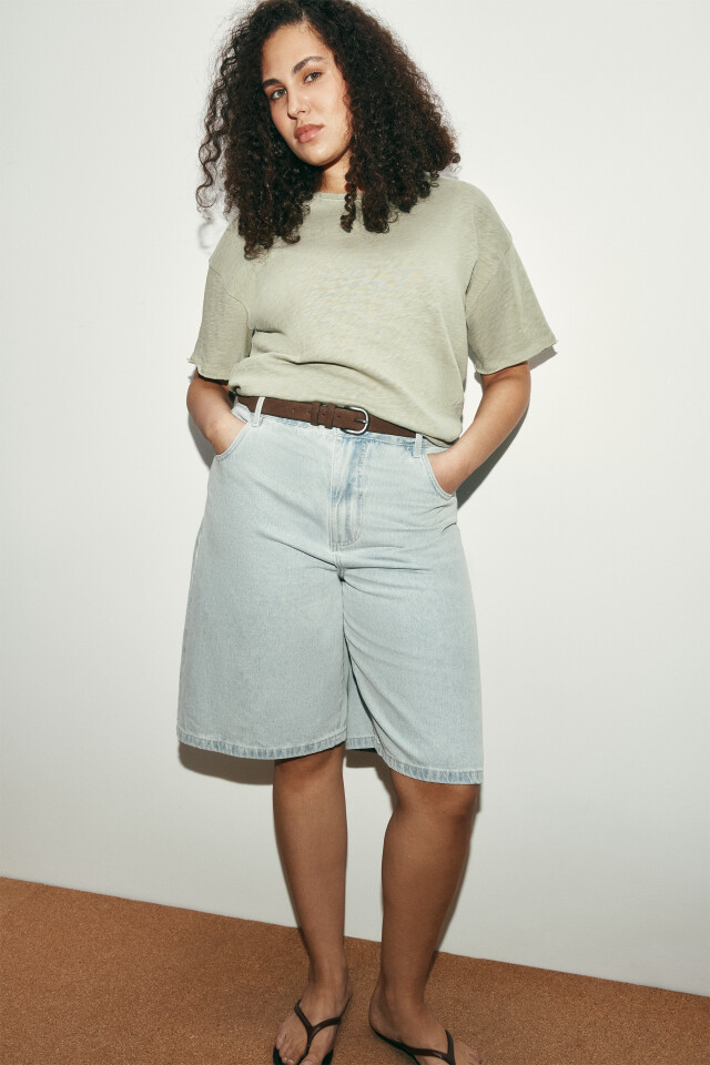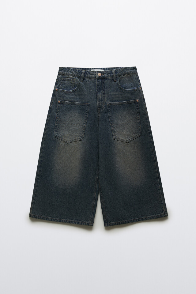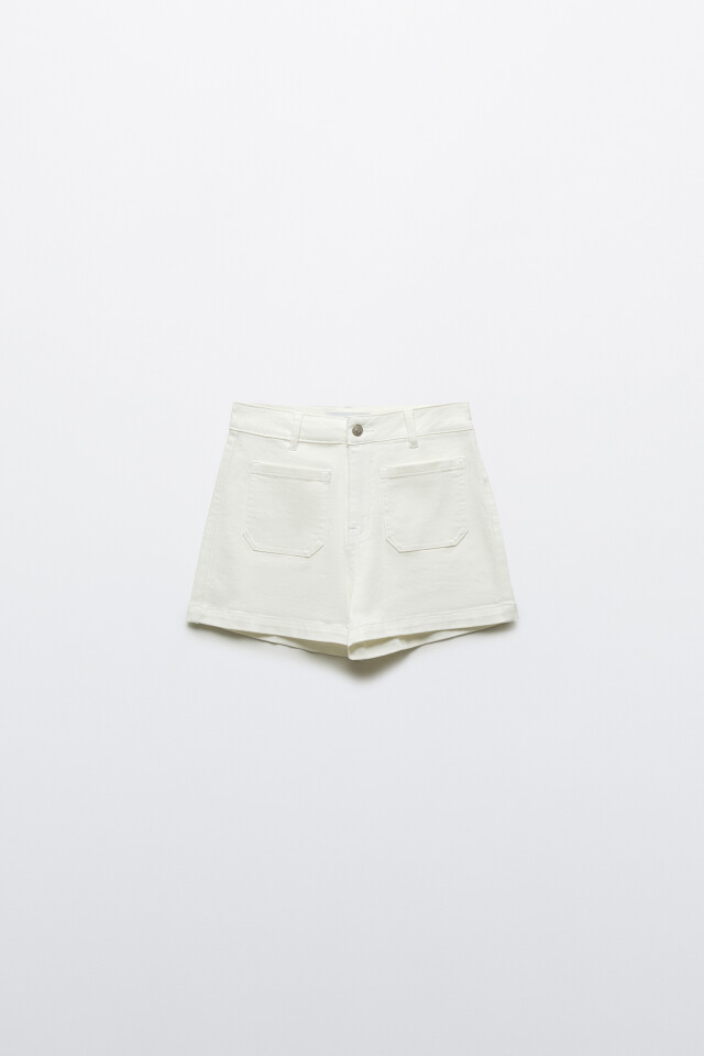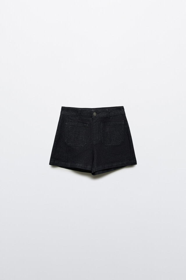 Шорты джинсовые с высокой посадкой и накладными карманами