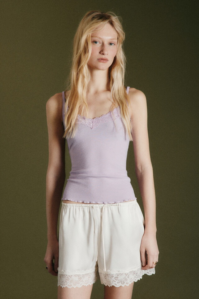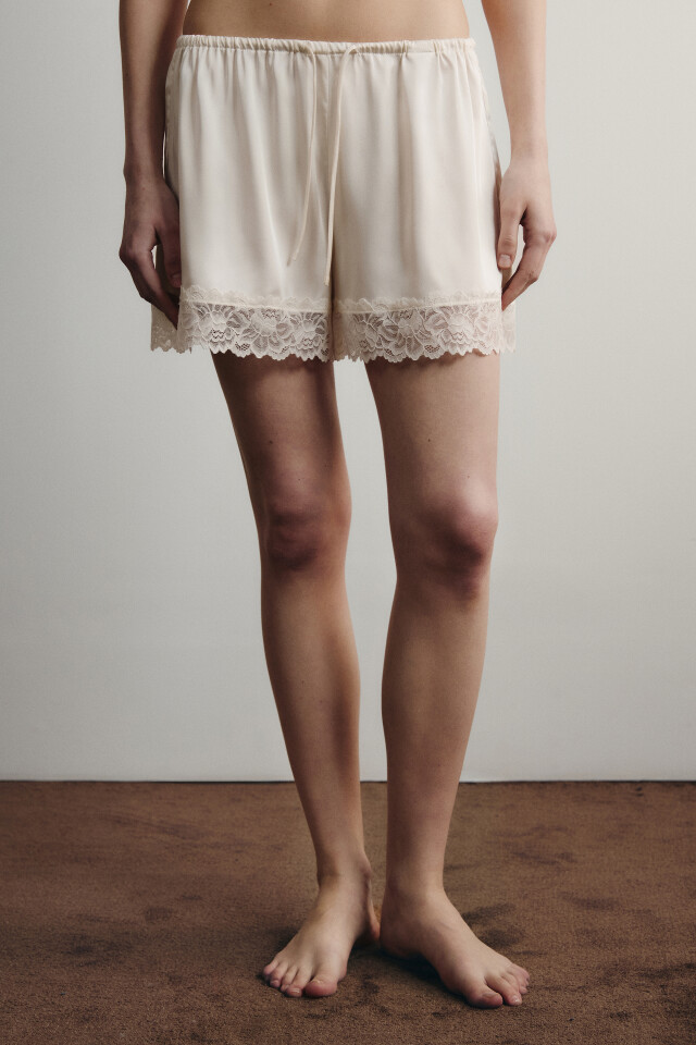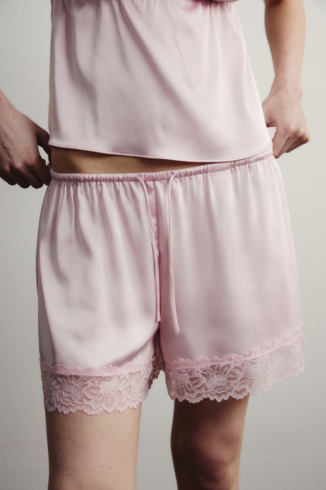 Шорты домашние атласные на завязках с кружевом