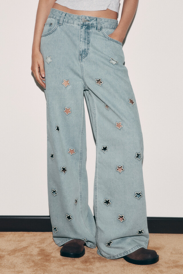 Джинсы багги с низкой посадкой и вырезанными звездами