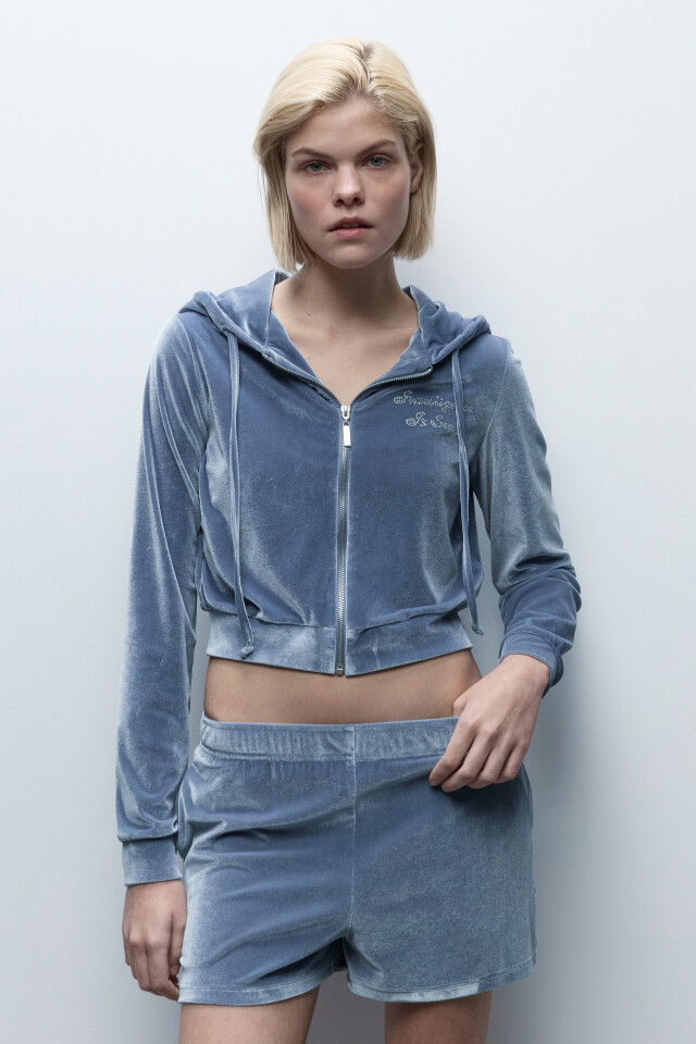 Толстовка домашняя велюровая со стразами