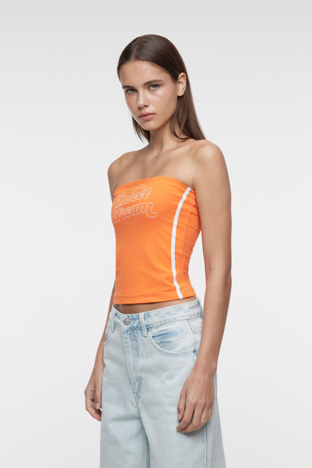 Топ-бандо хлопковый облегающий с принтом-надписью
