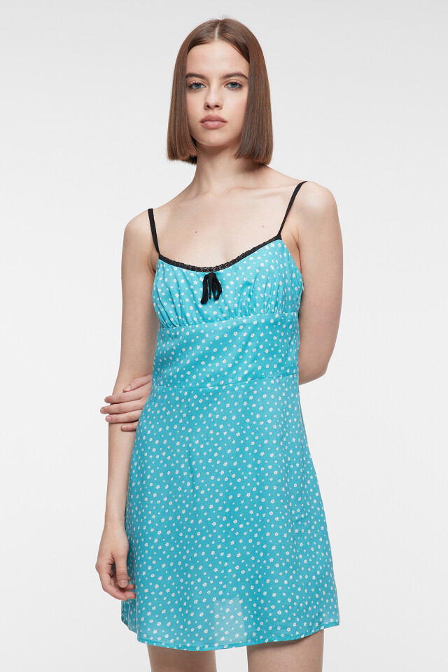 Сарафан мини вискозный с кружевом и бантиком на груди