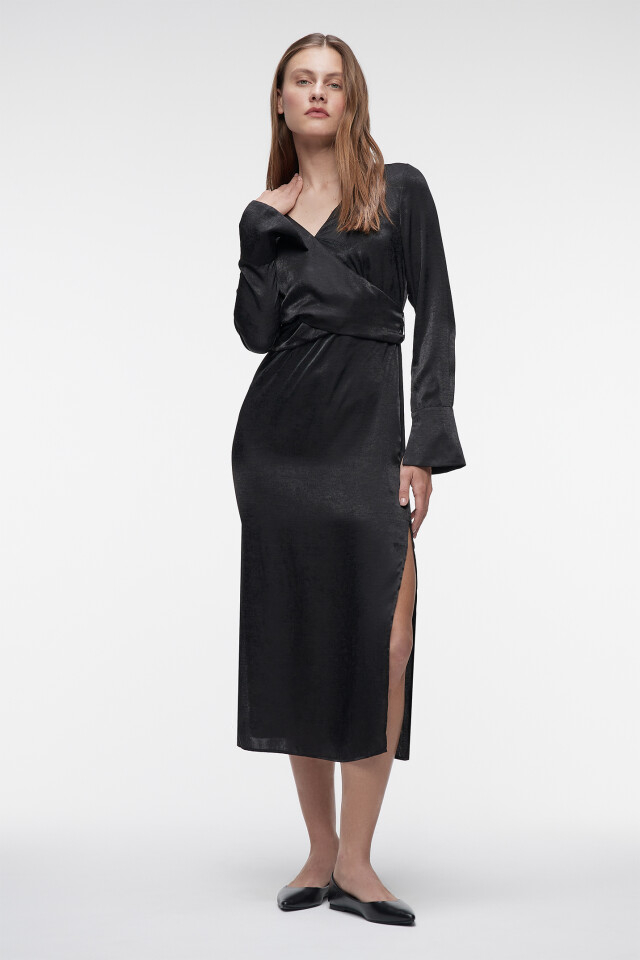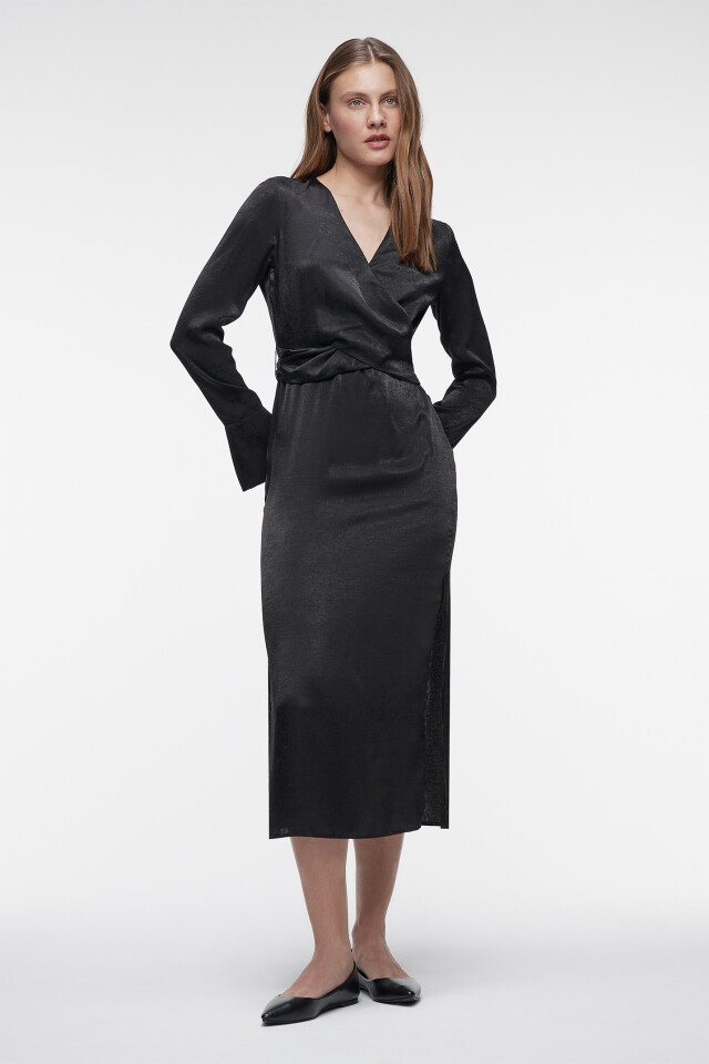 Платье А-силуэта миди с запахом на груди и завязками