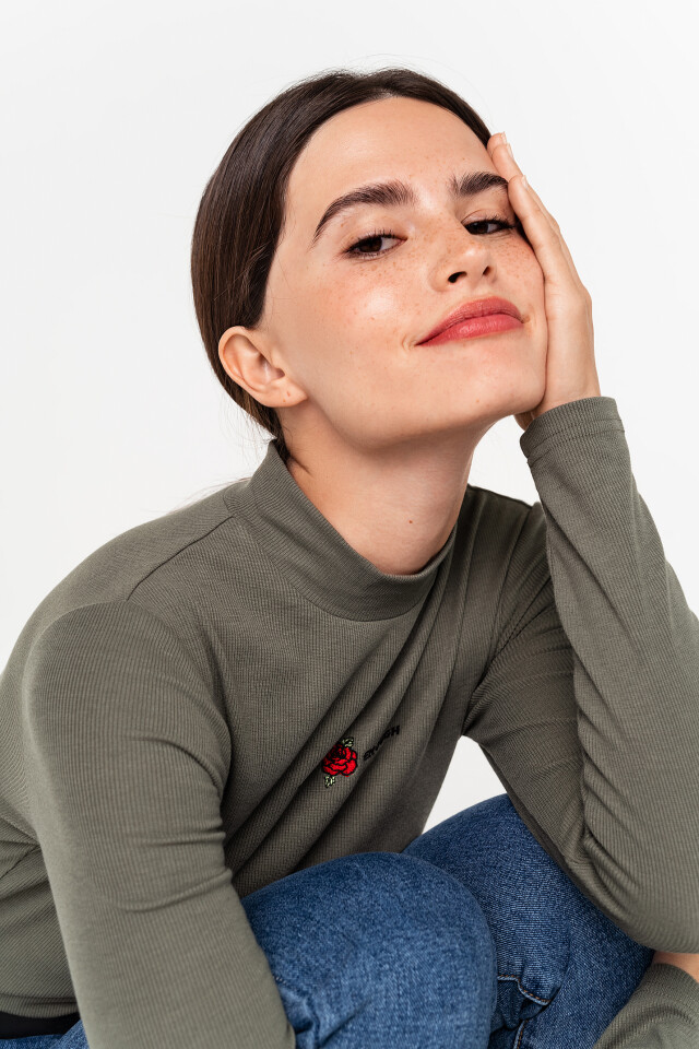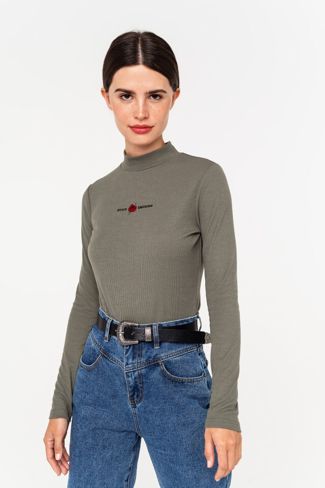 Лонгслив вискозный облегающий тонкой вязки в рубчик