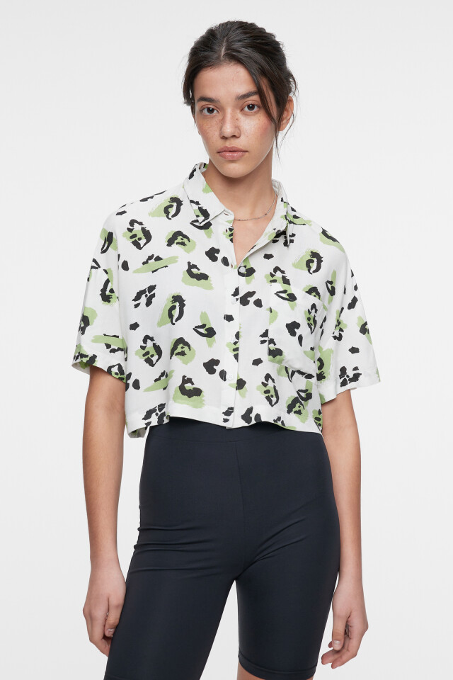 Топ-футболка укороченный с принтом в стиле пэчворк