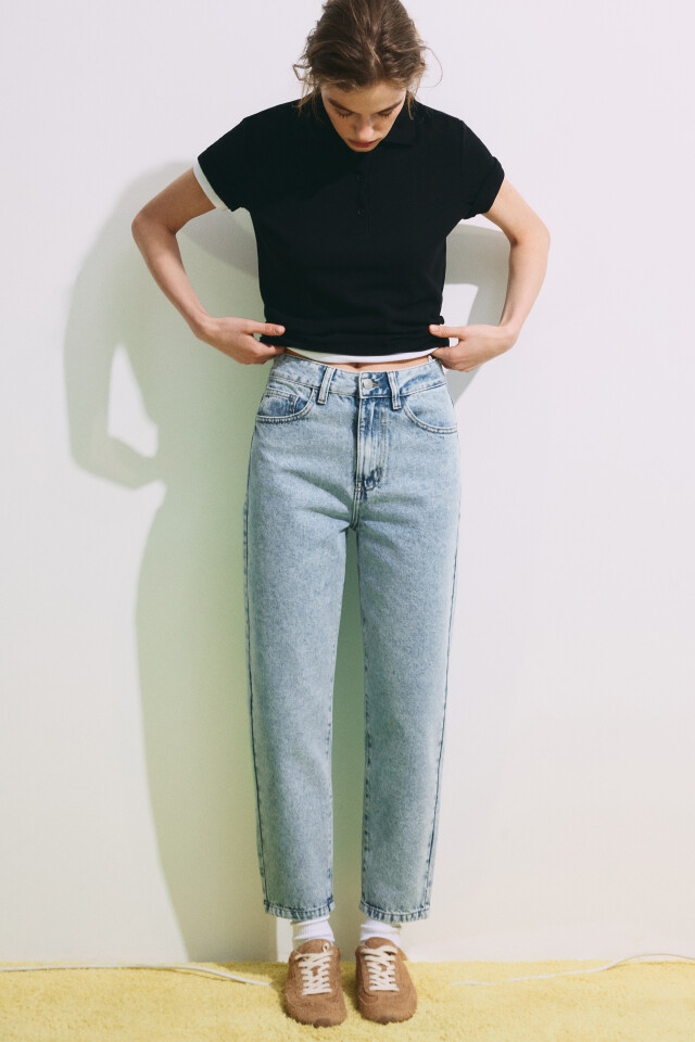 Джинсы mom fit укороченные