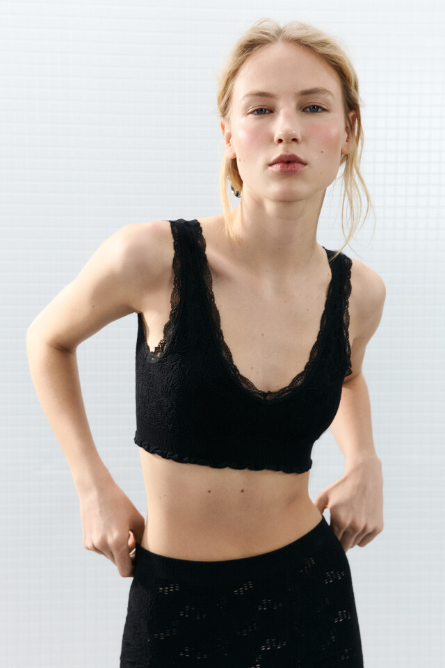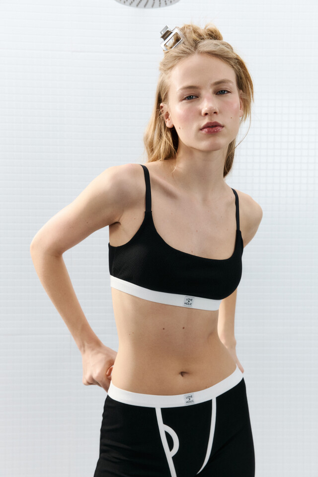 Бюстгальтер-топ в рубчик на тонких бретелях