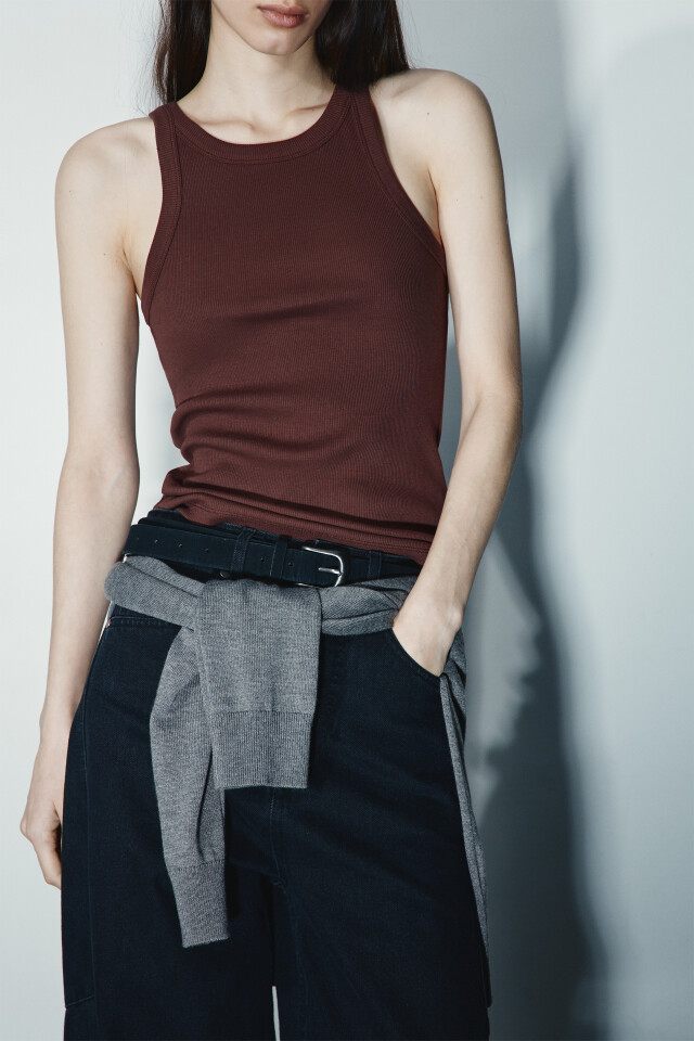 Майка базовая облегающая в рубчик
