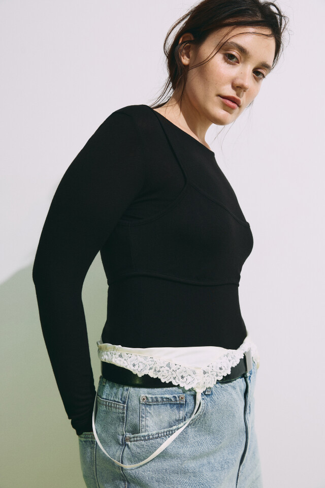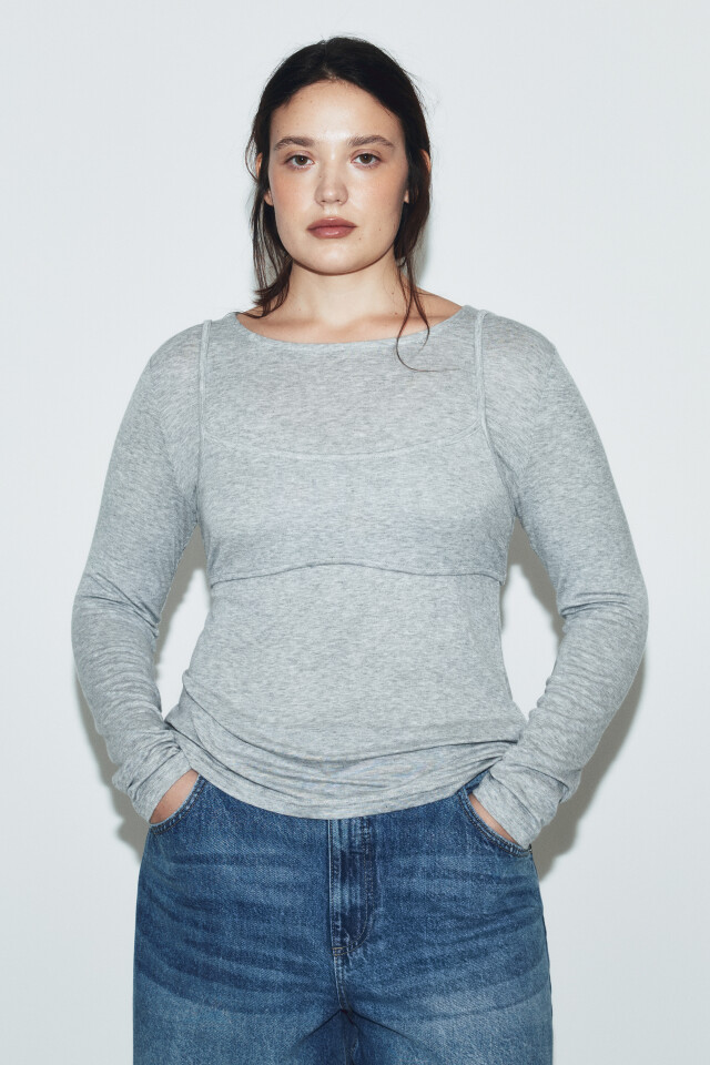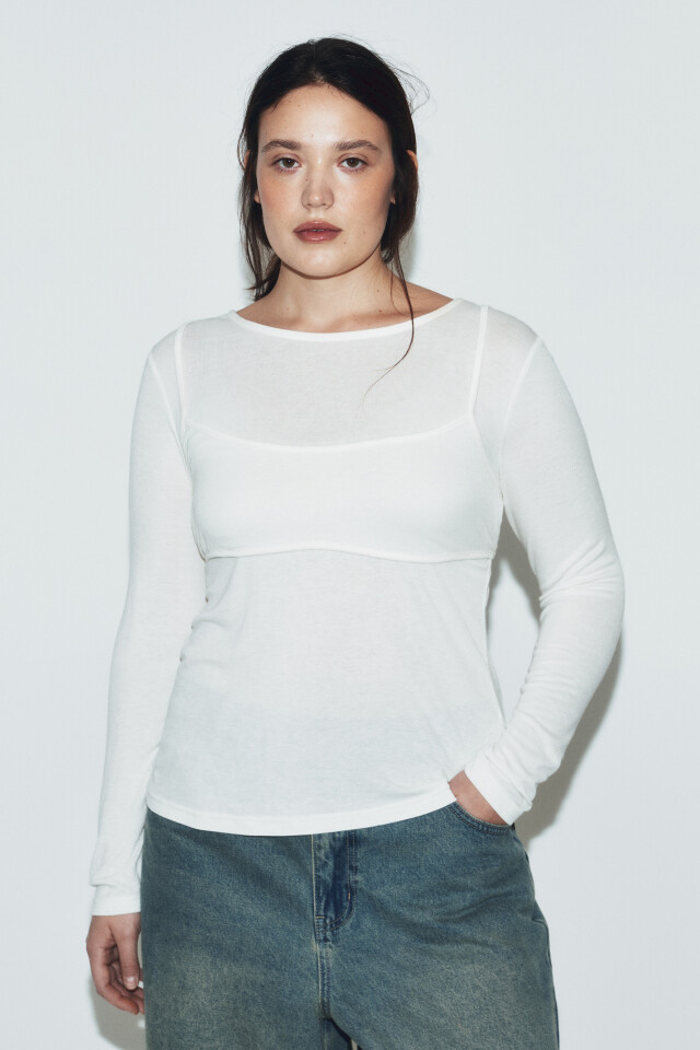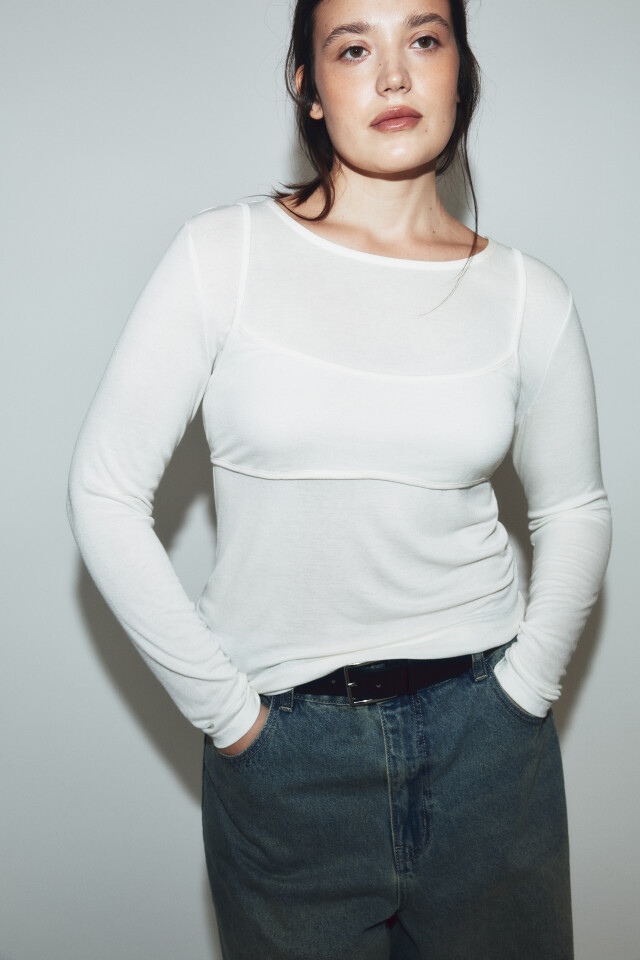 Лонгслив oversize с имитацией топа