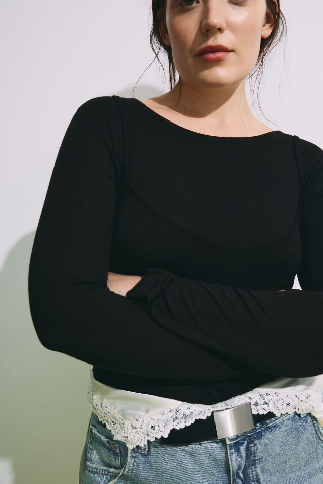 Лонгслив полуприлегающий с имитацией майки