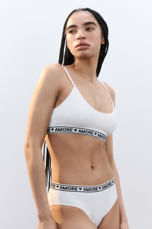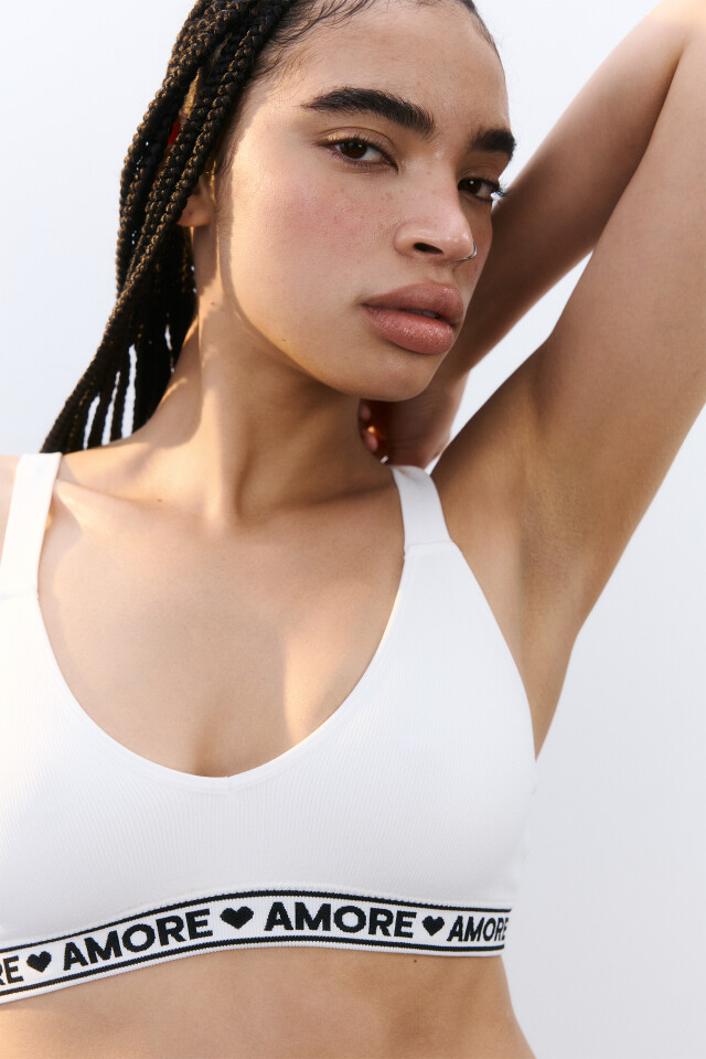 Бюстгальтер-топ в рубчик с надписью