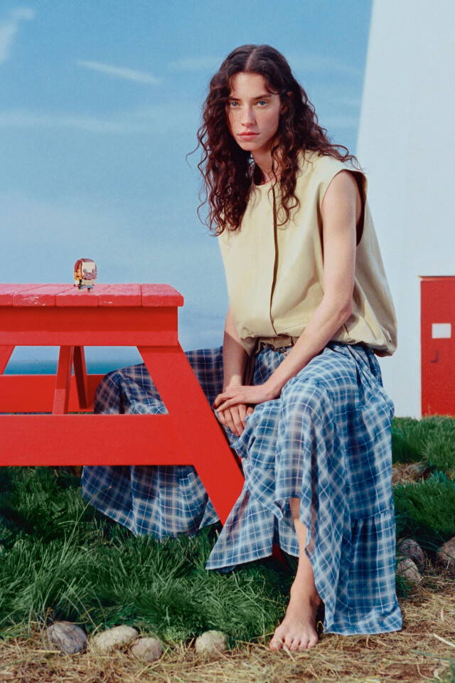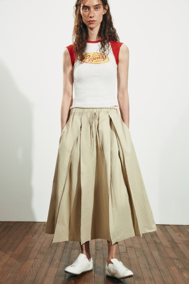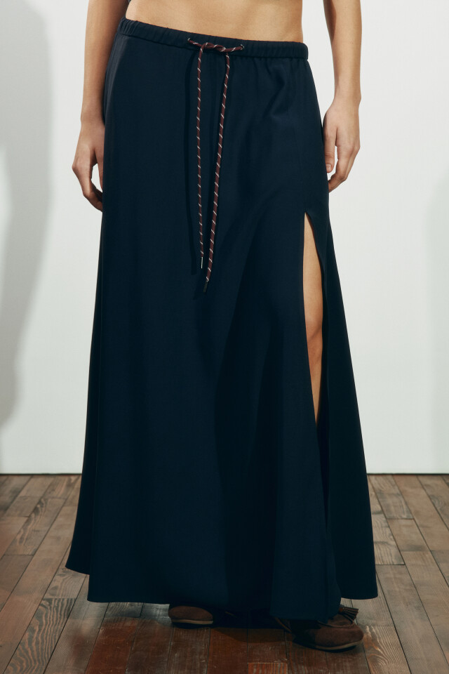 Юбка-трапеция макси с разрезом на завязках