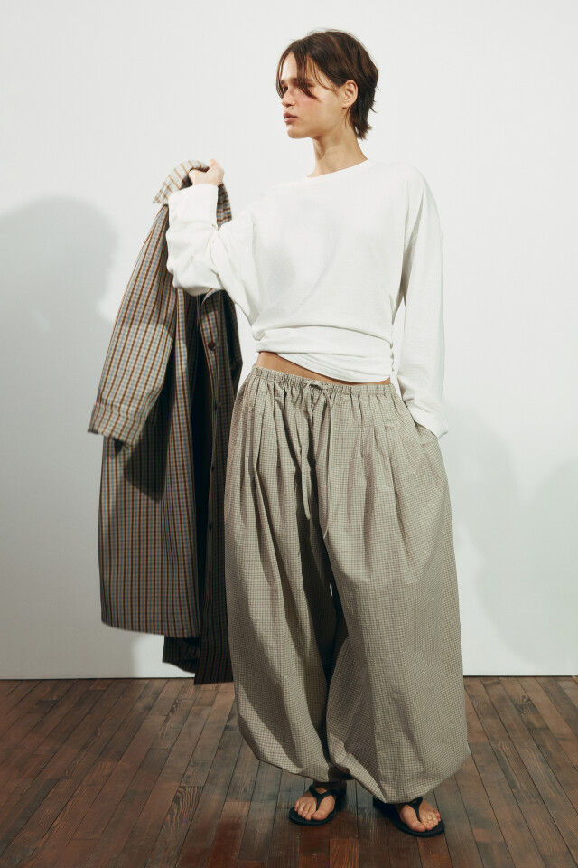 Брюки-аладдины в клетку на завязках