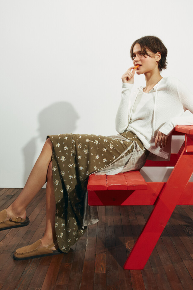 Юбка миди с цветочным принтом и фартуком на запах