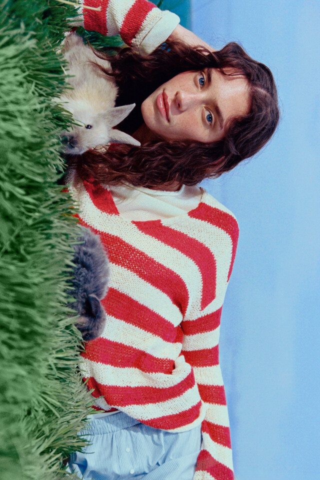Джемпер вязаный из ленточной пряжи в полоску