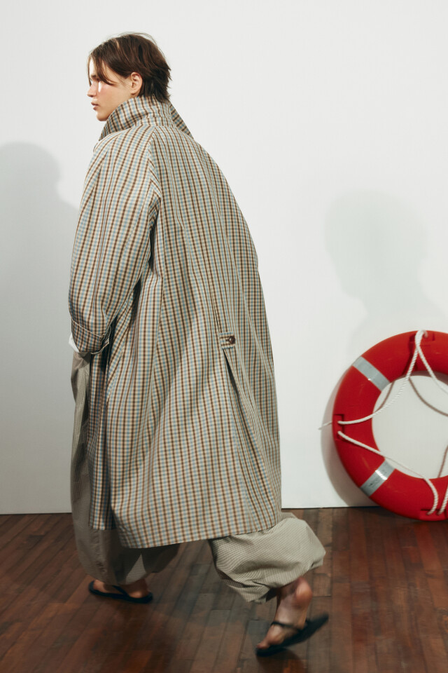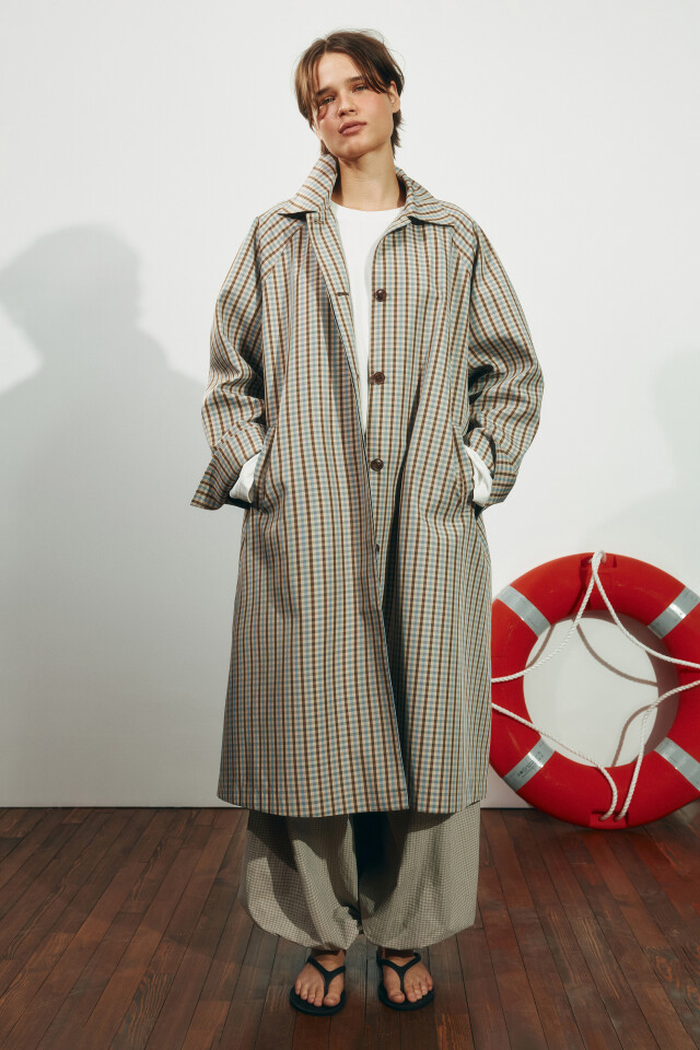 Плащ в клетку с отложным воротником