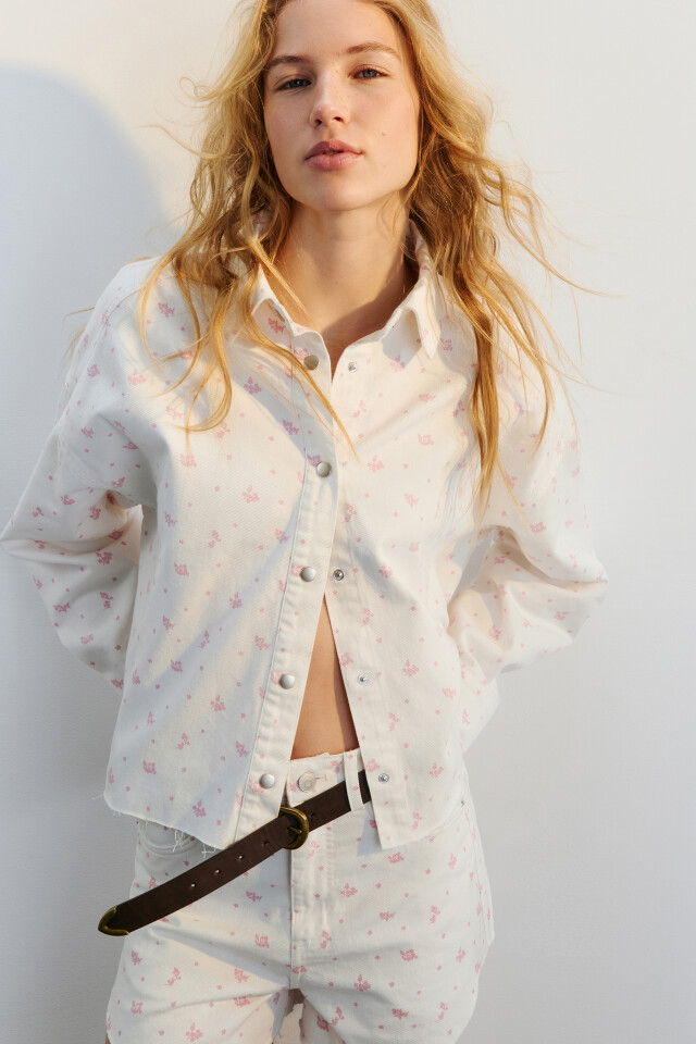 Рубашка джинсовая с цветочным принтом