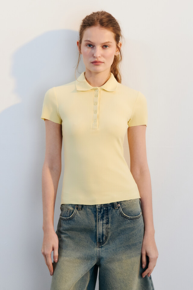 Футболка-поло приталенная в рубчик