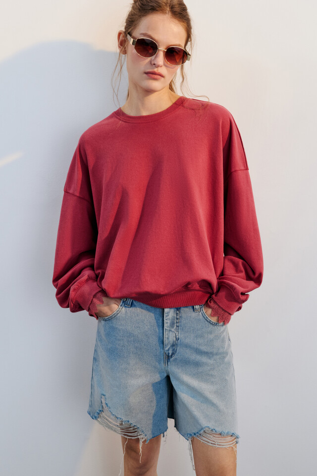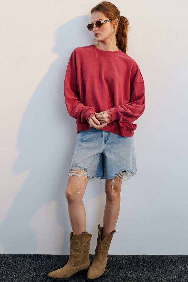 Свитшот из футера с кружевом