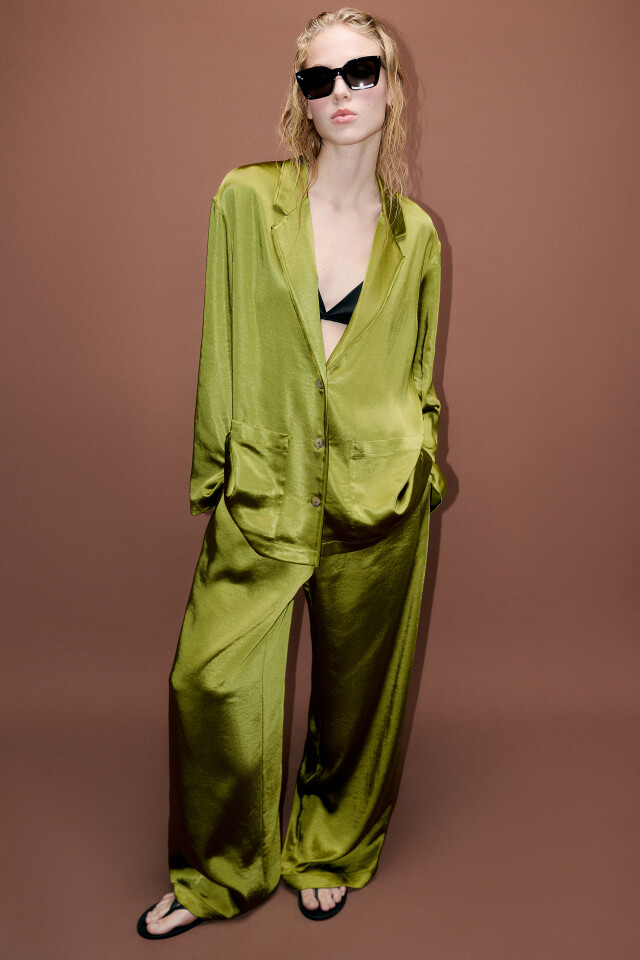 Брюки атласные с боковыми разрезами