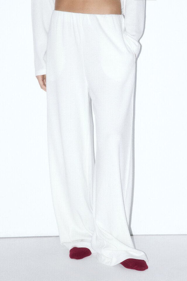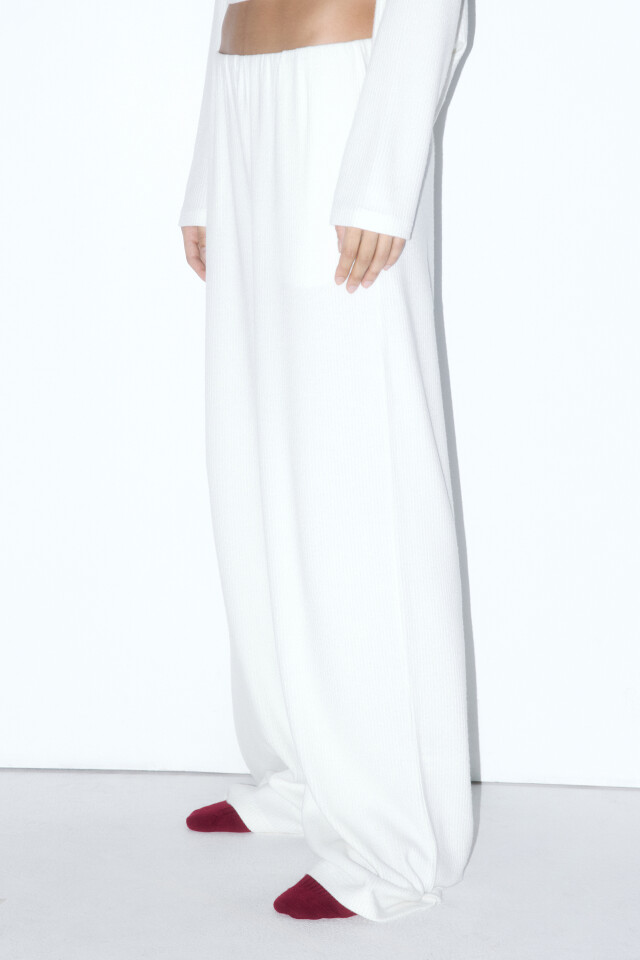 Брюки домашние широкие в рубчик с поясом-резинкой