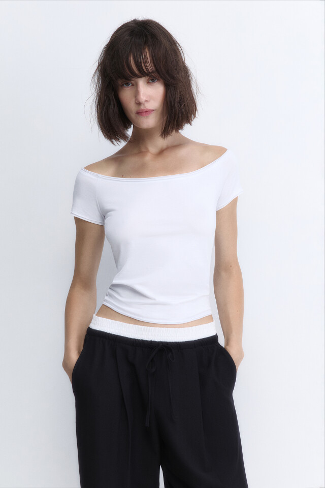 Футболка off-shoulders с имитацией второго слоя